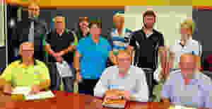 Standing L-R: Ross Earl (Bourke Shire Council), Paul McKenna (Franks Service Station), Anna McCorkle (Bourke High School), Kelly Randall (Bourke Furniture One), Ross Campbell (Sole Trader), Daniel Gooch & Stephanie Gooch (Mitchell Caravan Park). Seated: Murray Nicholls (Murray’s Plumbing), Grant Leslie (The Balmoral Group), and Matthew Pitt (Darling Irrigation). PHOTO: WH